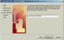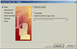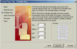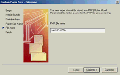 Lo que toca ahora es establecer los márgenes de la hoja, y cuando hagas click en Siguiente, se te mostrará la información del papel que acabas de crear (que en realidad es una hoja personalizada, y que para nosotros depende del área disponible en nuestra máquina para el trazado de imágenes).