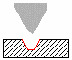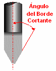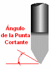 En la primera imagen, se tiene el ángulo del borde cortante, el doble de este ángulo determinará el tipo de "V" que se producirá en la pieza a grabar, en algunos casos, este ángulo puede tender a cero, es decir, no será una ranura en forma de "V", sino un canal de caras paralelas.