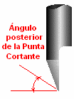 Ahora veamos el ángulo posterior de la punta, este es necesario para darle mayor cuerpo al extremo de la herramienta, ya que de lo contrario, el filo de la punta no duraría mucho tiempo, y a demás para darle una terminación chula...!! al vértice principal de remoción.