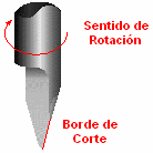 Se dice que por lo general estos tipos de herramientas tienen un sólo borde cortante. no es como las típicas mechas de un taladro, que tienen dos, en la siguiente imagen se puede ver resaltado este borde cortante y el sentido de rotación de la herramienta...