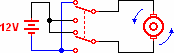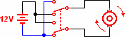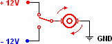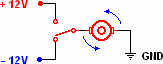 Existen varias formas de lograr que estos motores inviertan su sentido de giro, una es utilizando una fuente simétrica o dos fuentes de alimentación con un interruptor simple de dos contactos y otra es utilizar una fuente común con un interruptor doble es decir uno de 4 contactos, en todos los casos es bueno conectar también un capacitor en paralelo entre los bornes del motor, éste para amortiguar la inducción que generan las bobinas internas del motor (aunque no lo representaré para facilitar un poco la comprensión del circuito, está...?), las conexiones serían así...