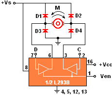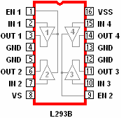 Entre los Drivers mencionados en la página anterior, el más conocido es el L293B. Toda la información aquí disponible fue extraída de la hoja de datos de este integrado, que puedes bajarlo desde aquí, aunque claro..., está en inglés :oP