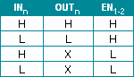 Por otro lado OUTn quedará en alta impedancia (X) si el terminal EN1-2 se encuentra a nivel bajo (L), es decir que en este caso ya no tiene importancia el valor de INn, y por lo tanto OUTn quedará totalmente libre.