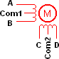 En la imagen los dos bobinados del motor se encuentran separados, pero ambos tienen un terminal central el cual lo llamaremos común (Com1, Com2) jeje, esto parece de puertos... :o))