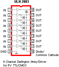 Lo que necesitamos ahora es un circuito para manejar este motor, y lo vamos a hacer fácil, mira, te consigues un ULN2003 o un ULN2803, que creo es 4 ó 5 veces más económico que el L293B, y es algo así...
