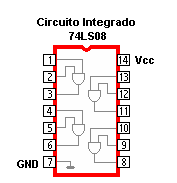 Veamos lo que encontramos en uno de ellos; en este caso un Circuito integrado 74LS08, un TTL, es una cuádruple compuerta AND. Es importante que notes el sentido en que están numerados los pines y esto es general, para todo tipo de integrado...