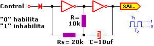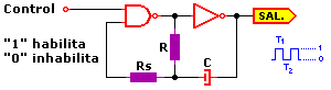 Creo que está claro, si el terminal de control está a nivel 0 el circuito oscilará, si está a nivel 1 dejará de hacerlo.