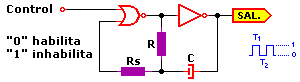 Lo mismo ocurre con las otras compuertas, observa esta con una compuerta NOR, una de sus entradas forma parte del oscilador y la otra hace de Control.