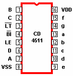 El circuito provee las funciones de un cerrojo (latch) de almacenamiento de 4 bit, un decodificador BCD 8421 a 7 segmentos, y gran capacidad de excitación de salida.
