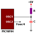 Si no requieres mucha precisión en el oscilador, puedes utilizar una resistencia y un condensador, como se muestra en la figura. donde OSC2 queda libre entregando una señal cuya frecuencia es la del OSC/4.