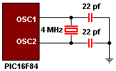 Es un circuito externo que le indica al micro la velocidad a la que debe trabajar. Este circuito, que se conoce como oscilador o reloj, es muy simple pero de vital importancia para el buen funcionamiento del sistema. El P1C16C84/F84 puede utilizar cuatro tipos de reloj diferentes. Estos tipos son: