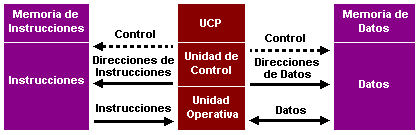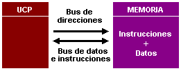 Arquitectura Von Neumann Dispone de una sola memoria principal donde se almacenan datos e instrucciones de forma indistinta. A dicha memoria se accede a través de un sistema de buses único (direcciones, datos y control).