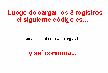 Veamos, decfsz reg3,1 esto es, decrementa reg3, si al decrementar te da cero saltéate una línea. El 1 que sigue a reg3, indica que guarde el valor de reg3 decrementado en el mismo reg3, es comoooo.... contador=contador-1 (se entiende...?)