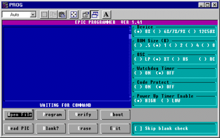 Ya puedes ejecutar el software de programación, abre Prog.exe y seguramente se apagarán los LED's rojo y verde (si estaban encendidos...!). Te aparecerá la siguiente ventana