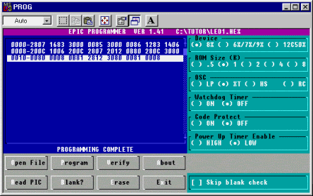 Colocas el PIC en el grabador, luego Seleccionas la opción Program y esperas a que te aparezca el mensaje Programming Complete