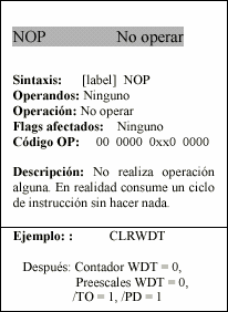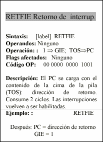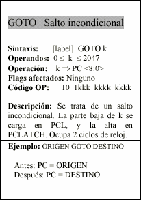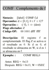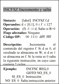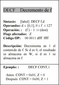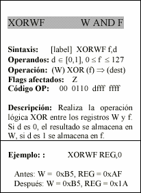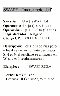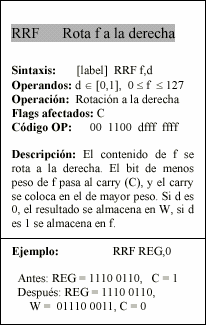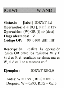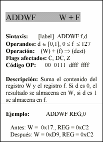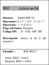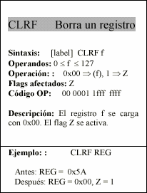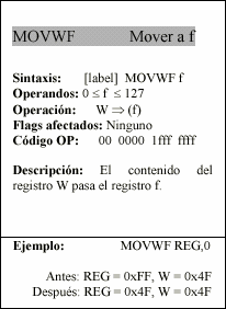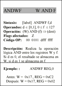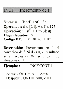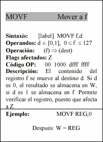 - f : Campo de 5 bits (fffff), contiene la dirección del banco de registros, que ocupa el banco 0 del área de datos. Direcciona uno de esos registros.