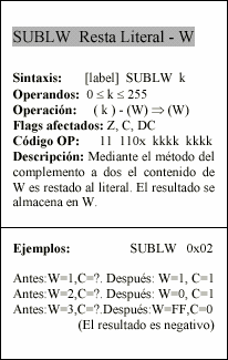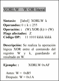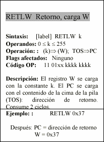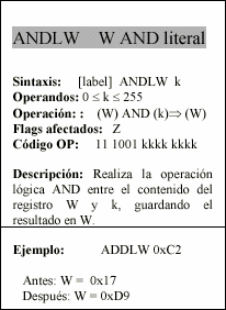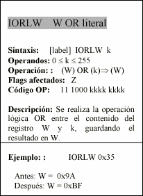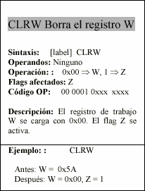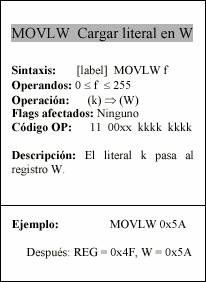- w : Registro W, similar al acumulador, es el registro de trabajo.