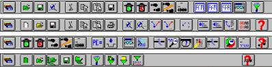 MPLAB pone a tu disposición 4 barras de herramientas personalizables según la tarea que estés realizando, pues no voy a describirlas, ya que puedes acceder a cada una de las opciones desde cualquiera de los menús, los cuales si describiré, pero veamos cuales son esas barras...