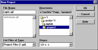 Luego de darle a Yes, verás una nueva ventana "New Project" en la que nos pide el nombre del proyecto y el directorio en que lo vamos a guardar, de nombre le puse "cqpic.pjt" (.pjt es la extensión de project) y lo guardaré en una carpeta que tengo por ahí llamada proyect justamente.
