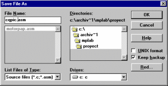 Veamos... Anteriormente solo creamos un proyecto llamado cqpic.pjt, luego le ligamos un nodo con cqpic.asm (el cual aún no existe) e incluso le dijimos donde lo guardaremos, y nos pusimos de acuerdo con MPLAB la forma en que queremos crear el archivo .hex, pues bueno lo que estamos haciendo ahora, es crear cqpic.asm, así es que te diriges a File-->Save As y lo guardas como cqpic.asm.