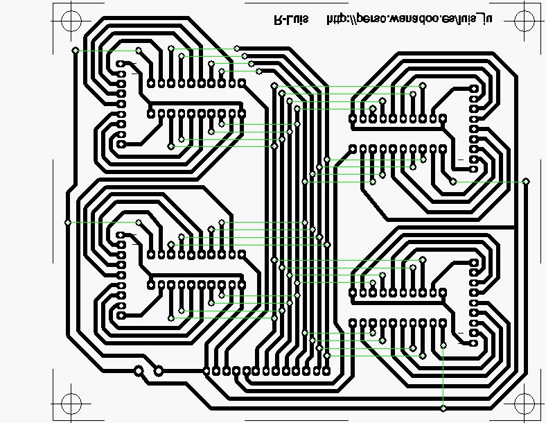 Para empezar, modificamos la interfaz. Debido al cruce de pistas en el diseño del PCB, buscamos un nuevo integrado que cumpla con las mismas características que el original, y apareció... En la actualidad contamos con 2 circuitos similares y controlamos 64 canales con dos puertos paralelos, la velocidad del soft es muy alta y funciona tanto en Win'98 como en Win'Me, con WinXP no obtuvimos buenos resultados, al menos por ahora.