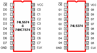 Nuestro primer circuito fue construido con un integrado 74LS374 y que todavía sigue funcionando, este integrado posee las mismas características que el 74LS574, lo único que los diferencia es la disposición de pines, observa la imagen...