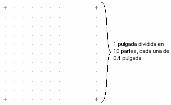 En este caso, trabajé con una grilla en la que cada pulgada está dividida en 10 partes, es decir cada sección de la grilla mide 0,1".