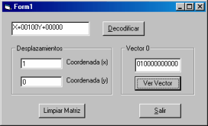 Al presionar el botón Ver vector, se muestra en el cuadro de texto todos los puntos de la primer fila de la hoja en ceros, salvo aquellos que corresponden a los puntos a perforar, los cuales deben mostrar un uno.