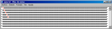 De acuerdo... si ahora seleccionamos el botón Limpiar Matríz en nuestro programita, ocurrirá lo siguiente... Se limpiará la matríz, y luego se guardará en el archivo ejem.txt, de este modo queda nuestro archivo lleno de ceros nuevamente.