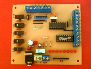 El circuito es muy sencillo, y está construído con la intensión de ser utilizado en conjunto con otra u otras placas, montadas sobre ellas mimas.