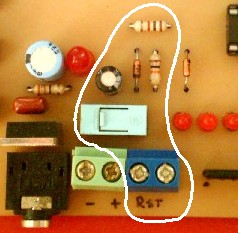 Del mismo lado y junto a la fuente se encuentra el circuito de Reset del micro, que por lo general lo utilizamos en nuestro entrenamiento, es por eso que cuenta con un micropulsador, (que lo saqué de un viejo mouse, quien dijo que hay que tirarlos...???)