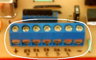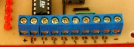 De todos modos, del lado del ULN se encuentra una colección de borneras las cuales corresponden al puerto B del micro y reflejan el estado de los pines del PIC16F84 (NO del ULN), por si deseas utilizar estas señales para cualquier otra tarea, como por ejemplo, la utilización de Displays, u otros dispositivos.