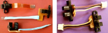 Ahora bien, cual es cual...???, en mi caso (de la segunda imagen) los que tienen una marca rosada son los fotodiodos, y los que tienen una marca negra los emisores IR, y en la primer foto, los blancos son los IR's y los negros los fototransistores.